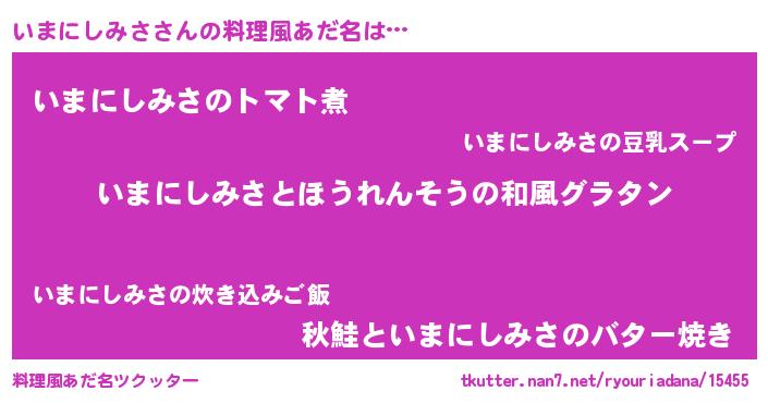 | ヘコむあだ名 | 『いまにしみさ(爆)』『いま太郎』 |