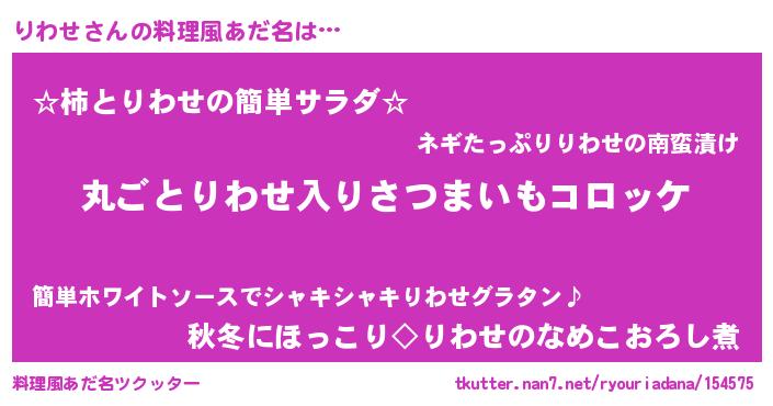 | ヘコむあだ名 | 『りわもー』『りわっ子』『なまこ酢』 |