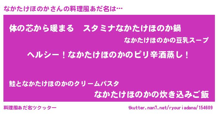 | 男性向けラノベタイトル風あだ名 | 『Re:なかたけほのかから始める異世界生活』 |