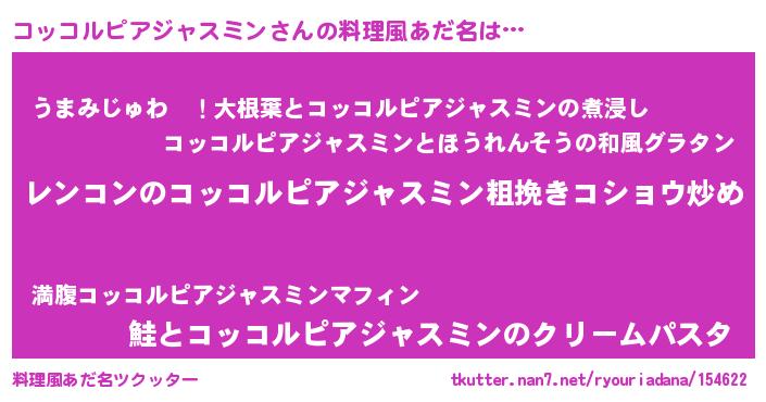 | 女子向けラノベタイトル風あだ名 | 『コッコルピアジャスミンアンティーク』 |
