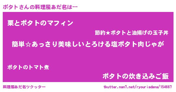 | 意味不明あだ名 | 『永久保存ポタト』『ペロリンポタト』 |