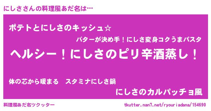 | ヘコむあだ名 | 『にしを』『なまこ酢』『にしさ(笑)』 |