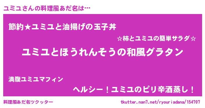 | ヒーロー風カッコイイあだ名 | 『スーパーユミユ』『サイバー戦士ユミユ』 |