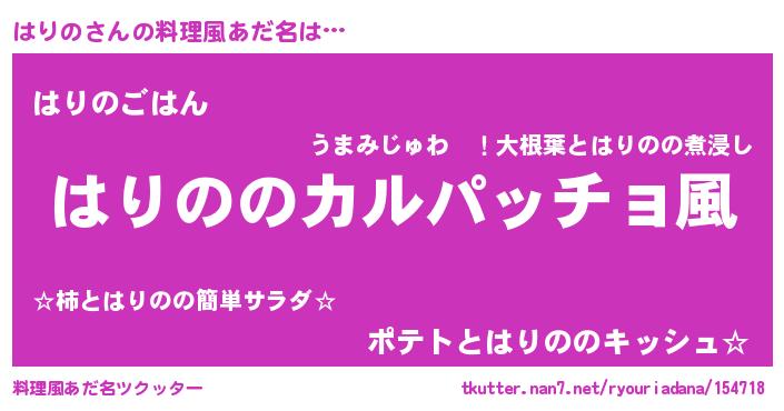 | ヒーロー風カッコイイあだ名 | 『仮面ハリダー』『銀牙騎士ハリ』 |