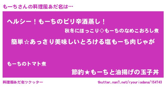 | 意味不明あだ名 | 『永久保存もーち』『自称もーち』 |