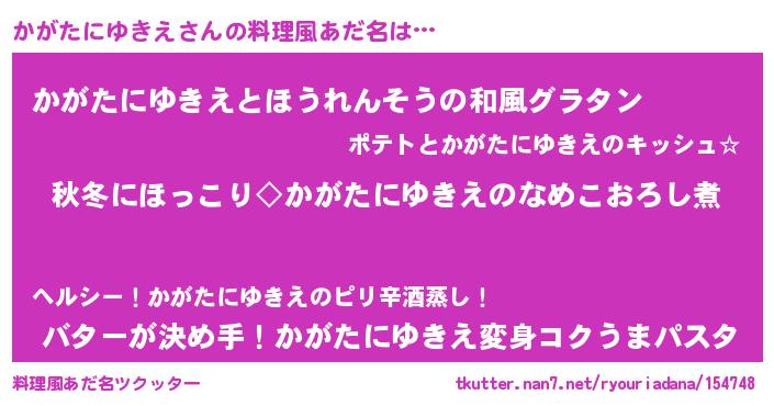 | 男性向けラノベタイトル風あだ名 | 『かがたにゆきえに滅ぼされるだけの簡単なお仕事です』 |