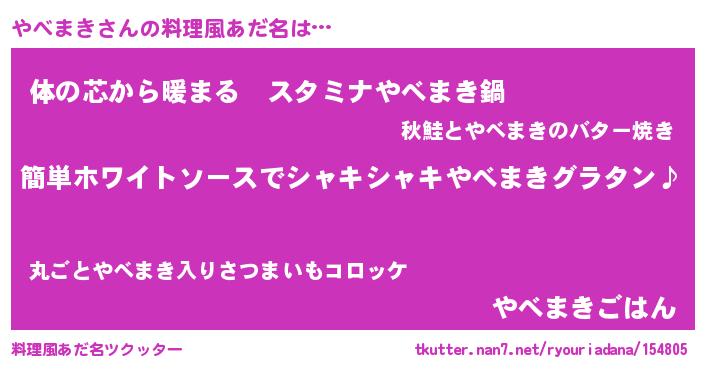 | 女子向けラノベタイトル風あだ名 | 『やべまき様がみてる』 |