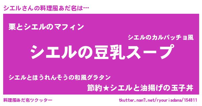 | 胡散臭い通販商品みたいなあだ名 | 『信頼と実績のサプリメント…その名も「シエル」』 |