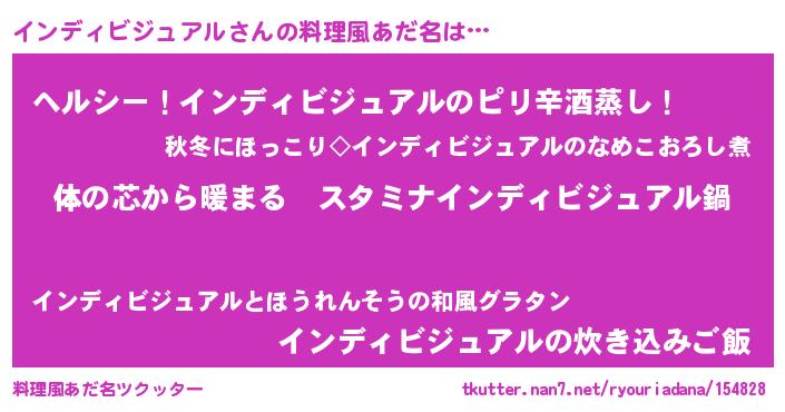 | 意味不明あだ名 | 『インディビジュアルフォーエバー』 |