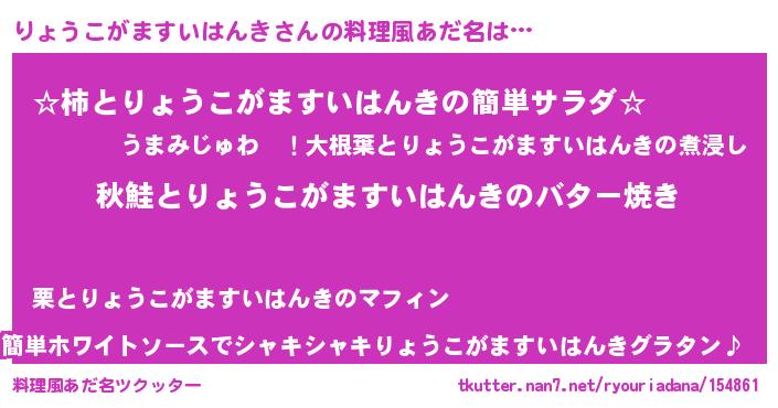 | 意味不明あだ名 | 『永久保存りょうこがますいはんき』 |
