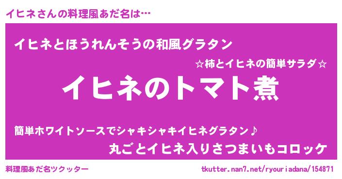 | ヒーロー風カッコイイあだ名 | 『正義の使者イヒネ』『仮面イヒダー』 |