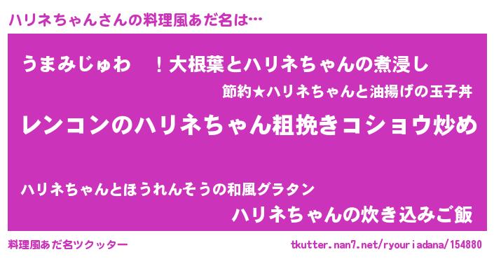 | ヘコむあだ名 | 『牛乳』『ハリふぇ~』『ハリを』 |