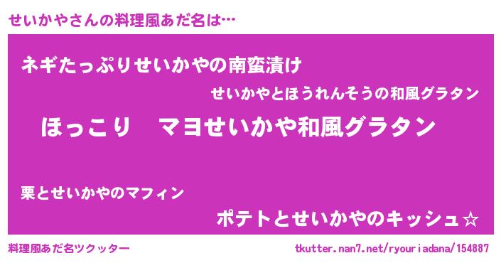 | 意味不明あだ名 | 『住所不定無職せいかや(53歳)』 |