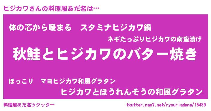 | 意味不明あだ名 | 『永久保存ヒジカワ』『ペロリンヒジカワ』 |