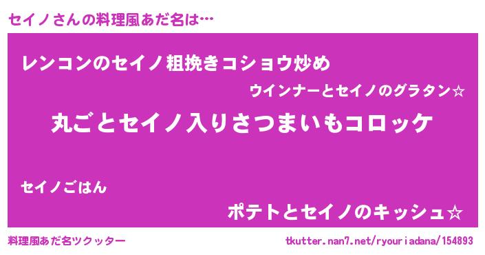 | ヘコむあだ名 | 『セイお』『レバニラ』『セイにー』 |