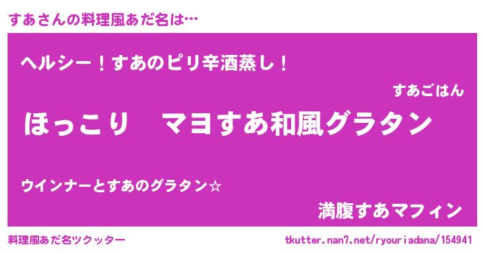| 意味不明あだ名 | 『住所不定無職すあ(85歳)』『自称すあ』 |