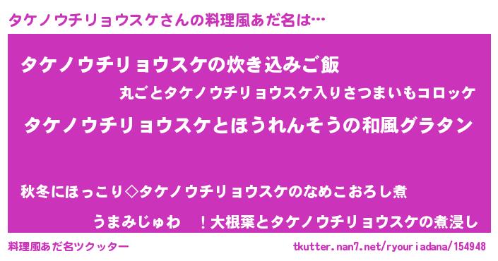 | 女子向けラノベタイトル風あだ名 | 『タケノウチリョウスケの玉の輿計画!』 |