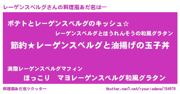 | 男性向けラノベタイトル風あだ名 | 『レーゲンスベルグアートオンライン』 |