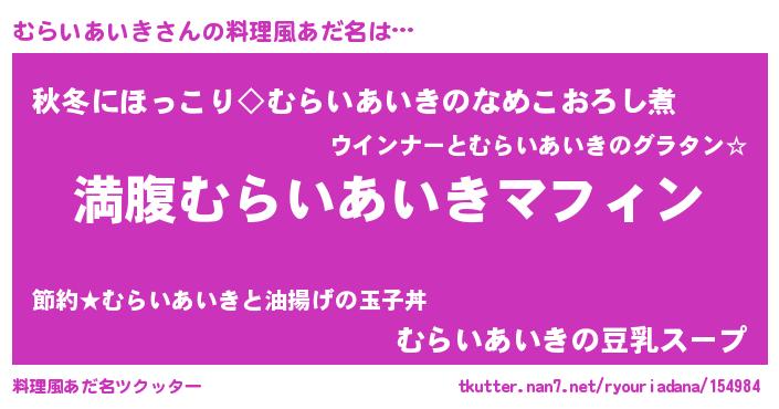 | ヘコむあだ名 | 『むらいあいき(小並感)』『むらっちょ』 |