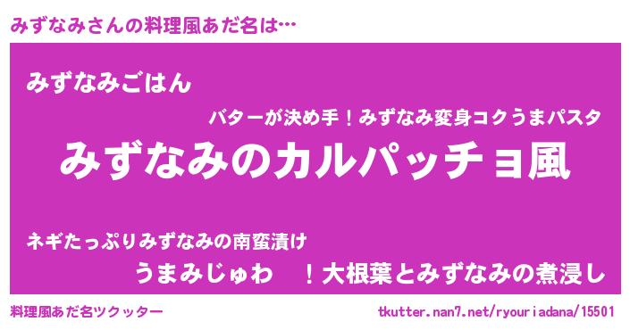 | 意味不明あだ名 | 『住所不定無職みずなみ(56歳)』 |
