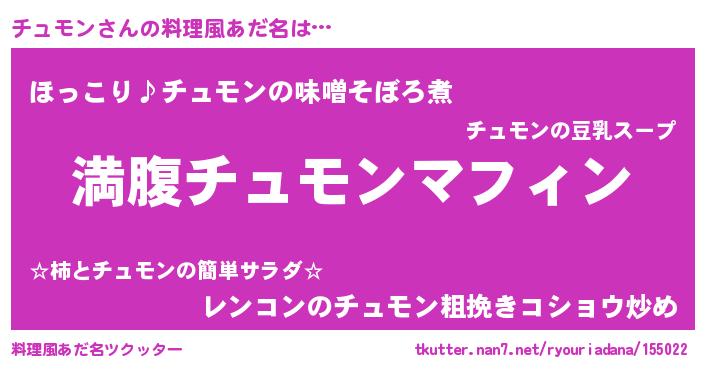 | 意味不明あだ名 | 『永久保存チュモン』『ペロリンチュモン』 |