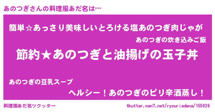 | 意味不明あだ名 | 『ペロリンあのつぎ』『永久保存あのつぎ』 |