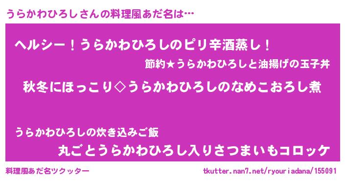 | ヘコむあだ名 | 『うらっふぃ~』『うらかわひろし(笑)』 |