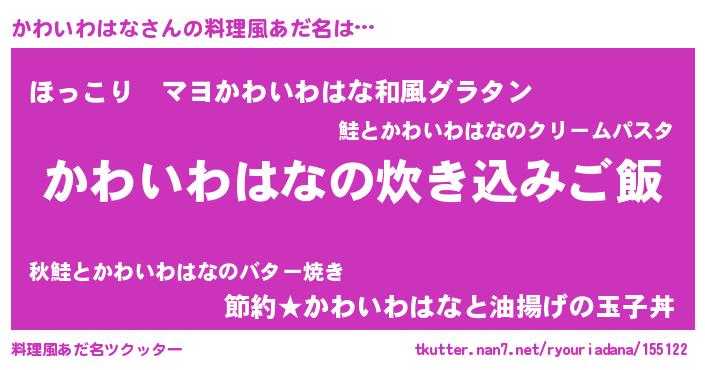 | ヒーロー風カッコイイあだ名 | 『仮面カワダー』『スーパーカワイワハナ』 |