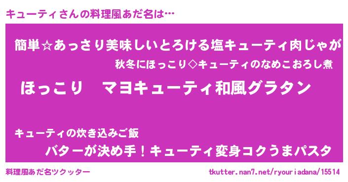 | 男性向けラノベタイトル風あだ名 | 『この素晴らしい世界にキューティを!』 |