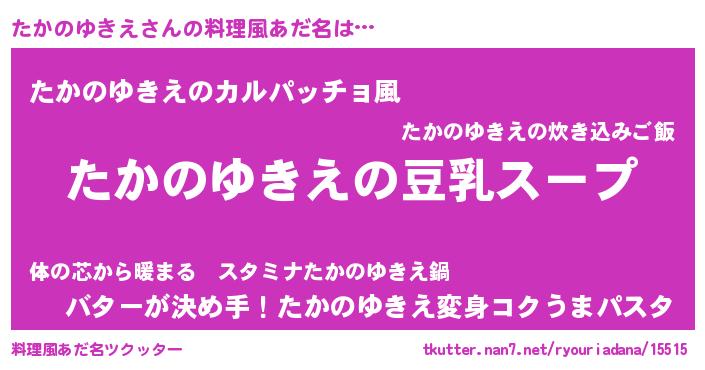| 男性向けラノベタイトル風あだ名 | 『ダンジョンにたかのゆきえを求めるのは間違っているだろうか』 |
