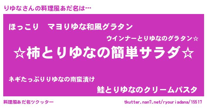 | ヘコむあだ名 | 『豆乳』『りゆにゅー』『りゆぷりん』 |