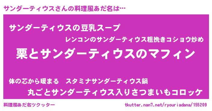 | 胡散臭い通販商品みたいなあだ名 | 『信頼と実績のサプリメント…その名も「サンダーティウス」』 |