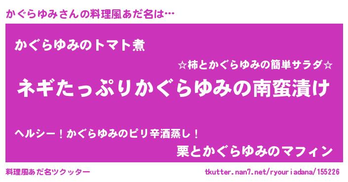 | ヘコむあだ名 | 『かぐにゅー』『かぐらゆみ(笑)』 |