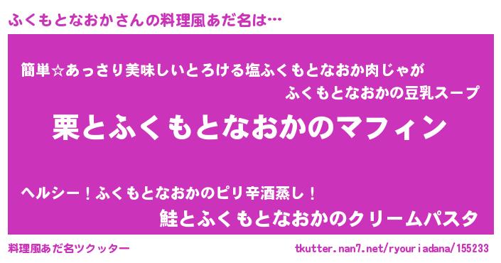 | 胡散臭い通販商品みたいなあだ名 | 『来世でも幸せになれる健康食品…その名も「ふくもとなおか」』 |