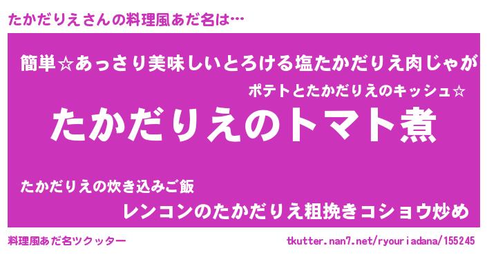 | ヒーロー風カッコイイあだ名 | 『正義の使者たかだりえ』『銀牙騎士タカ』 |