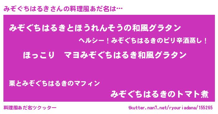 | 女子向けラノベタイトル風あだ名 | 『悪役みぞぐちはるきに転生したようですが、知った事ではありません』 |