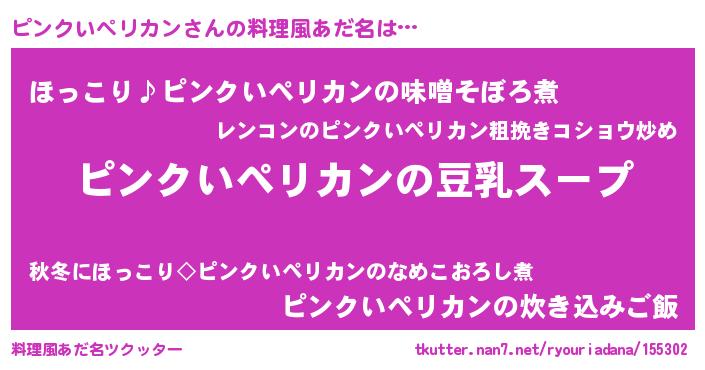 | 女子向けラノベタイトル風あだ名 | 『ピンクいペリカンは平凡を望む』 |