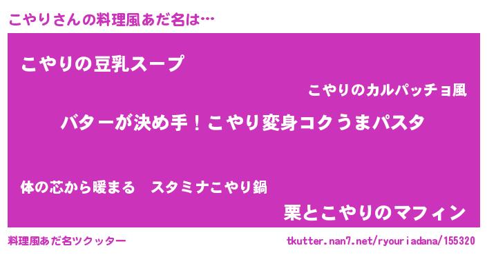 | 女子向けラノベタイトル風あだ名 | 『こやり恋絵巻』『こやりは平凡を望む』 |