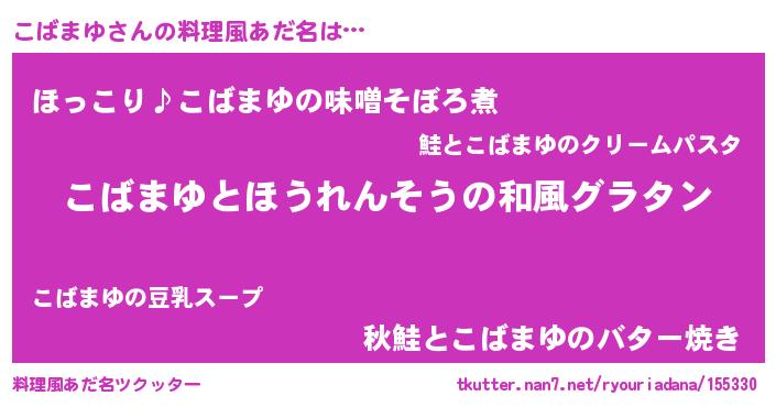| 男性向けラノベタイトル風あだ名 | 『転生したらこばまゆだった件』 |