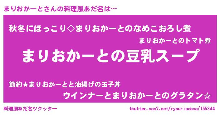 | 女子向けラノベタイトル風あだ名 | 『まりおかーとは平凡を望む』 |