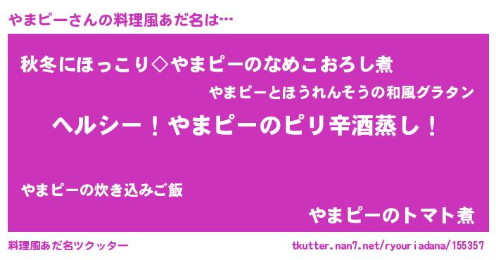 | ヘコむあだ名 | 『酢こんぶ』『やまピー(苦笑)』 |