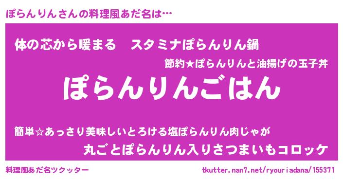 | 男性向けラノベタイトル風あだ名 | 『ポランリンスレイヤー』 |