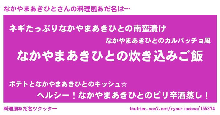 | 男性向けラノベタイトル風あだ名 | 『うちのなかやまあきひとが世界を掌握している!』 |