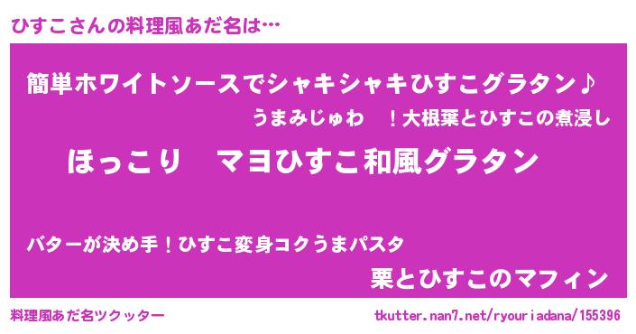 | 男性向けラノベタイトル風あだ名 | 『この素晴らしい世界にひすこを!』 |