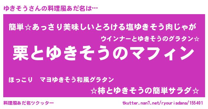 | 胡散臭い通販商品みたいなあだ名 | 『絶対に幸福をもたらす健康食品…その名も「ゆきそう」』 |