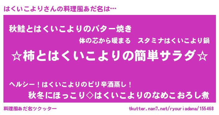 | 男性向けラノベタイトル風あだ名 | 『緋弾のハクイコヨリ』 |