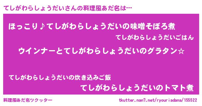 | 意味不明あだ名 | 『てしがわらしょうだいフォーエバー』 |