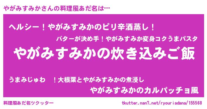 | 胡散臭い通販商品みたいなあだ名 | 『芸能人もオススメするアガリクス…その名も「やがみすみか」』 |