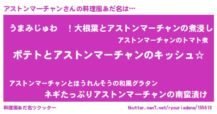 | ポケモン風あだ名 | 『ヒアストンマーチャン』『アストダネ』 |