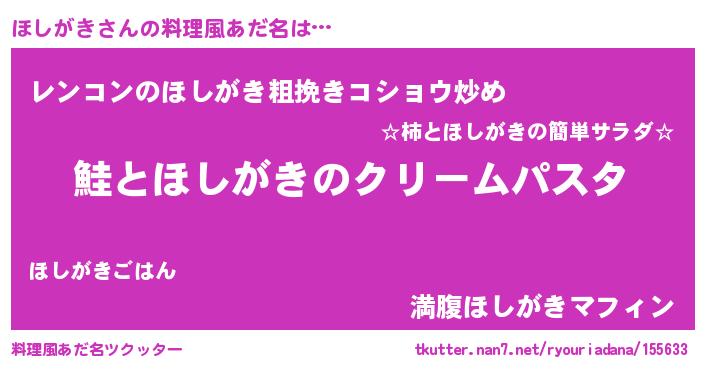 | ヘコむあだ名 | 『ほしがき(笑)』『ほしを』『牛乳』 |